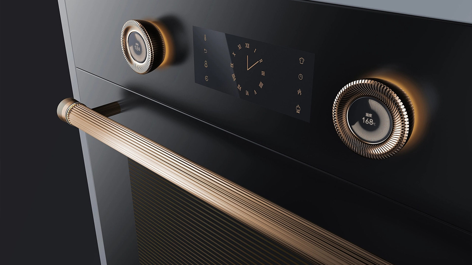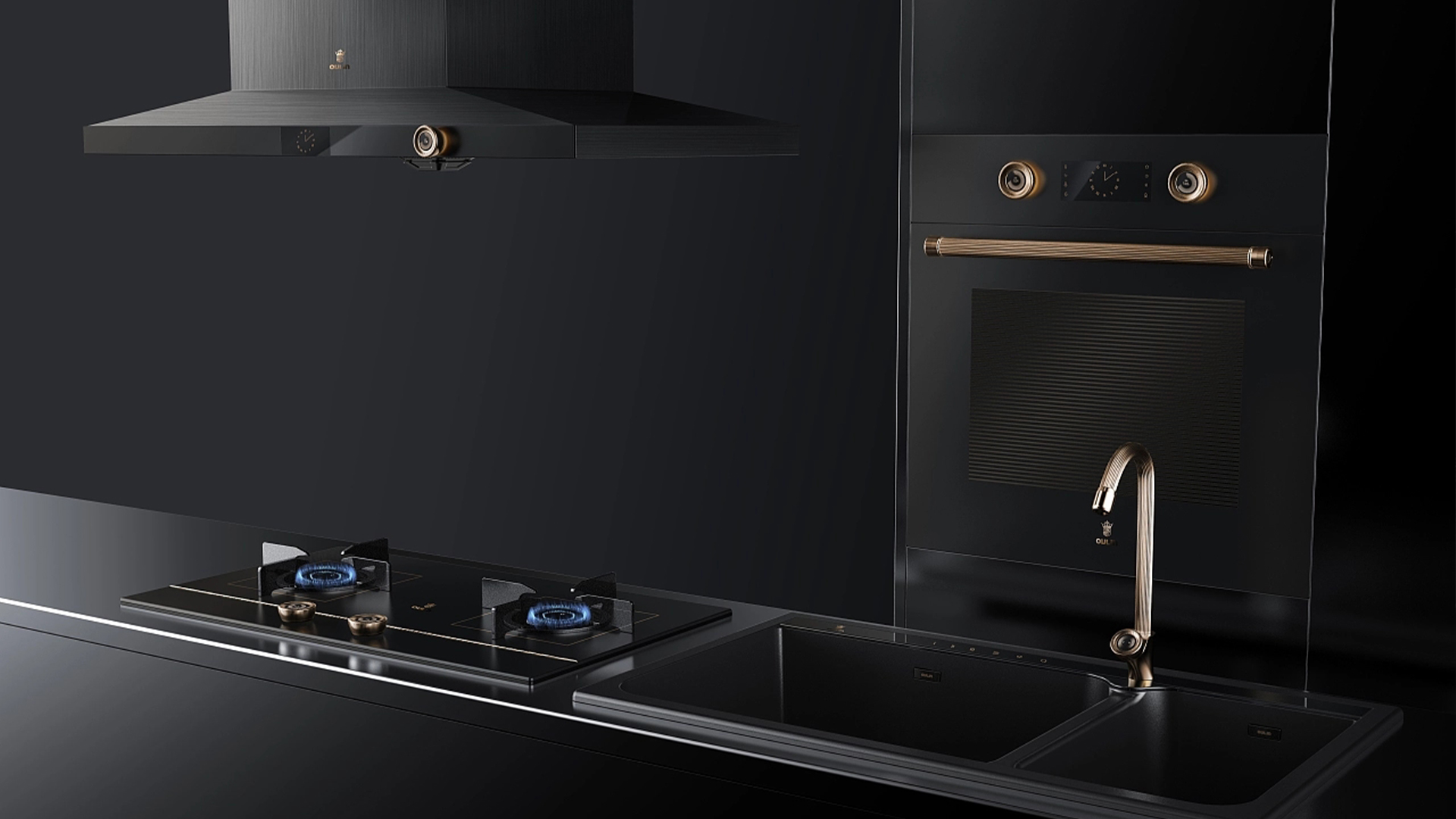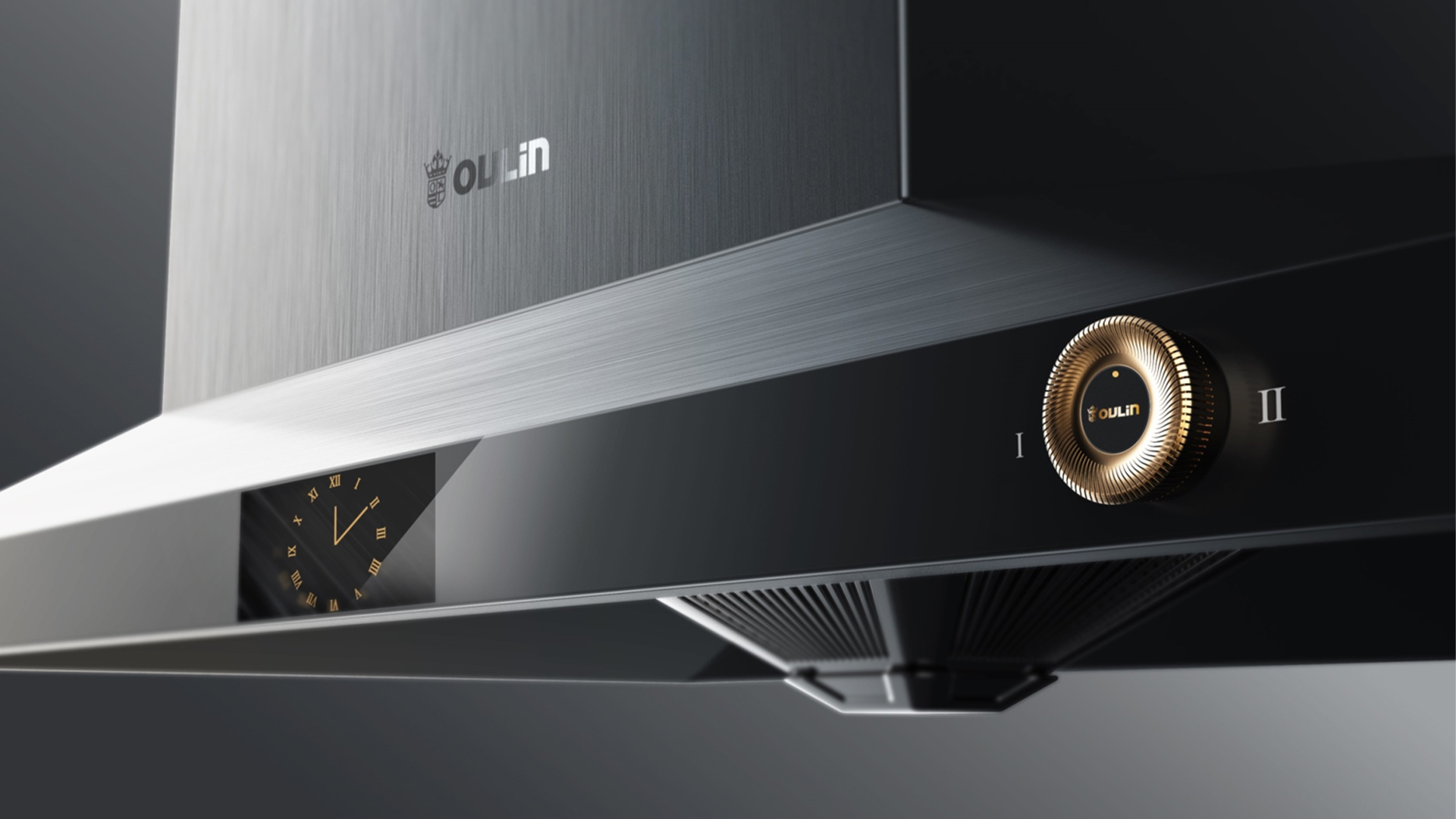 外觀上,該系列廚房電器外觀采用黑色鋼化玻璃,配上高亮銀色、玫瑰金的航空鋁材,按照美學比例進行幾何分割,給人高端價值的印象。油煙機內(nèi)部采用內(nèi)單層O型過濾網(wǎng),外平板側(cè)吸過濾,內(nèi)外結(jié)合油煙徹底分離,健康環(huán)保。精確的45度黃金斜角敞開設(shè)計,防止用戶意外磕碰。整體采用近距快吸式設(shè)計,徹底排除油煙。同時,我們擴大了金屬油杯的容量,減少倒油次數(shù),從根本上方便使用者清理。在燃氣灶設(shè)計上,我們大膽采用顯示屏+觸控調(diào)節(jié)按鍵設(shè)計,任意調(diào)控烹飪模式,為用戶帶來更智能的廚房體驗。