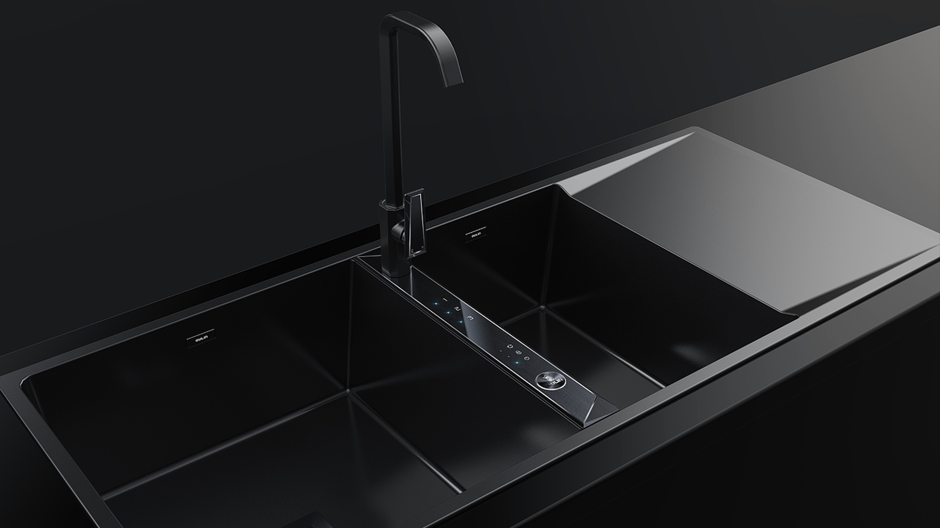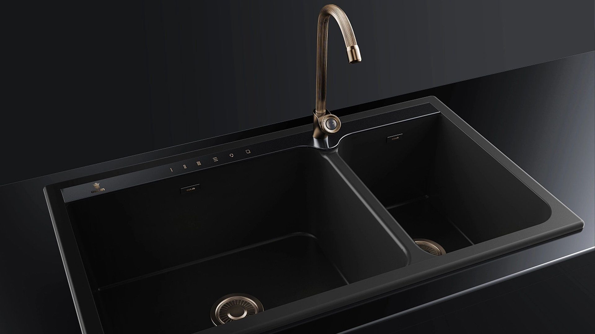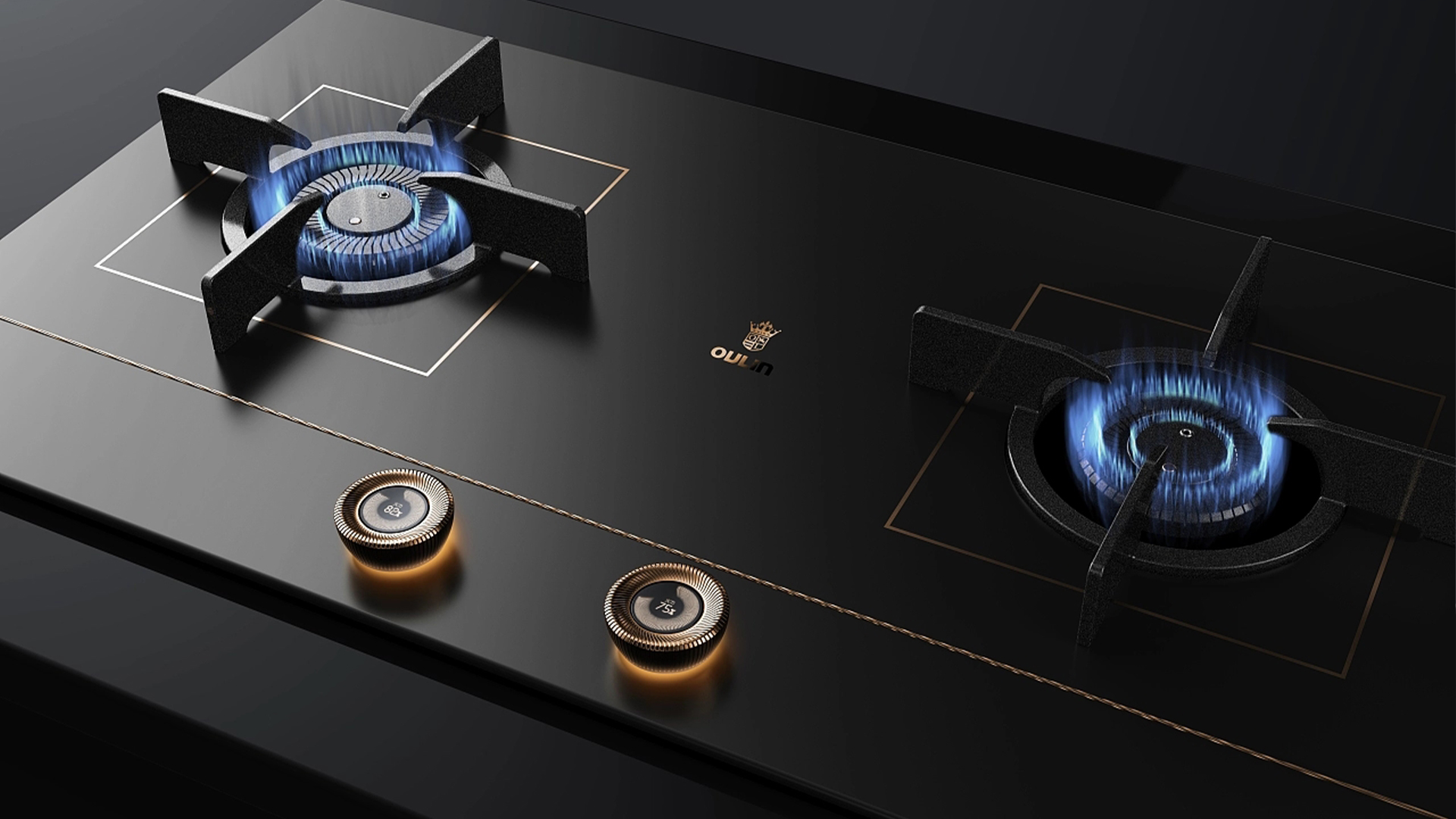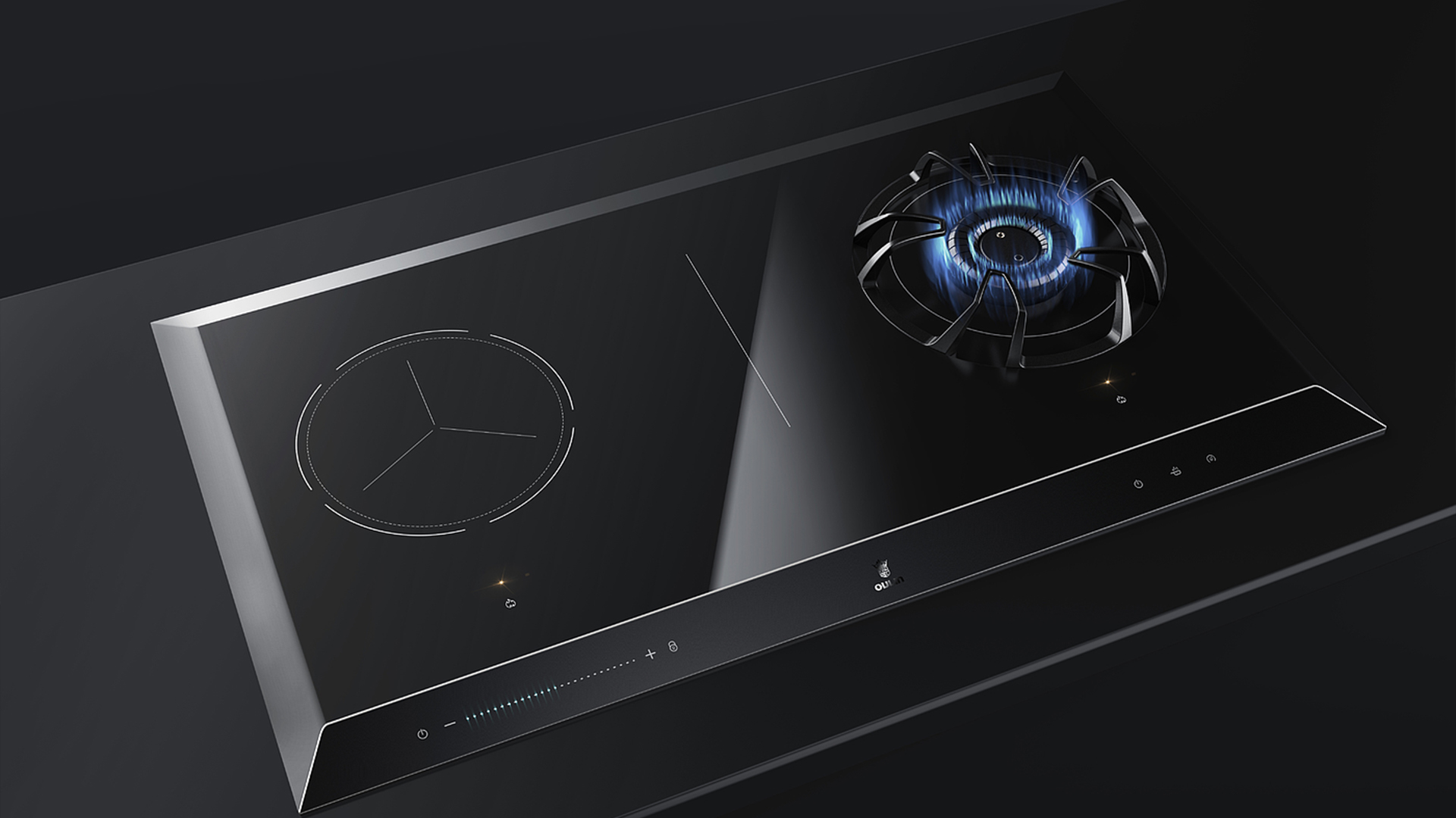 外觀上,該系列廚房電器外觀采用黑色鋼化玻璃,配上高亮銀色、玫瑰金的航空鋁材,按照美學比例進行幾何分割,給人高端價值的印象。油煙機內(nèi)部采用內(nèi)單層O型過濾網(wǎng),外平板側(cè)吸過濾,內(nèi)外結(jié)合油煙徹底分離,健康環(huán)保。精確的45度黃金斜角敞開設(shè)計,防止用戶意外磕碰。整體采用近距快吸式設(shè)計,徹底排除油煙。同時,我們擴大了金屬油杯的容量,減少倒油次數(shù),從根本上方便使用者清理。在燃氣灶設(shè)計上,我們大膽采用顯示屏+觸控調(diào)節(jié)按鍵設(shè)計,任意調(diào)控烹飪模式,為用戶帶來更智能的廚房體驗。