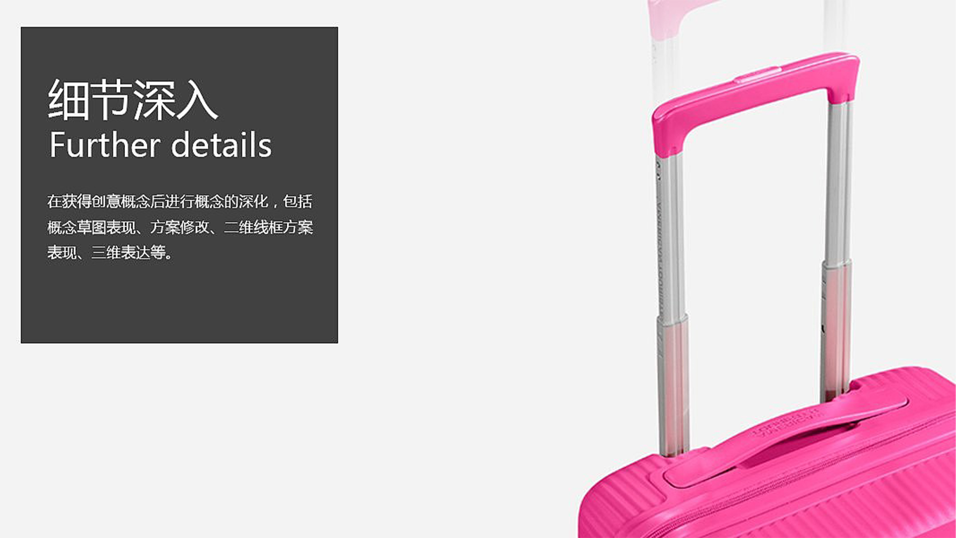 美旅AO8拉桿箱是一款為旅行者設計出行產(chǎn)品,整體的外觀造型柔和、簡潔。在箱體表面有立體旋渦設計,結(jié)合產(chǎn)品時尚個性的色彩搭配,就如同奪冠的關(guān)鍵一球,一躍成為人群中的焦點。產(chǎn)品設計采用PP材料的注塑工藝一體成型,外觀更加流暢舒適,同時也抗壓、耐刮花,手感舒適。背部采用一體式鋁合金拉桿,輕盈堅固,貼合手部的人機設計,增添了手部使用的舒適感。