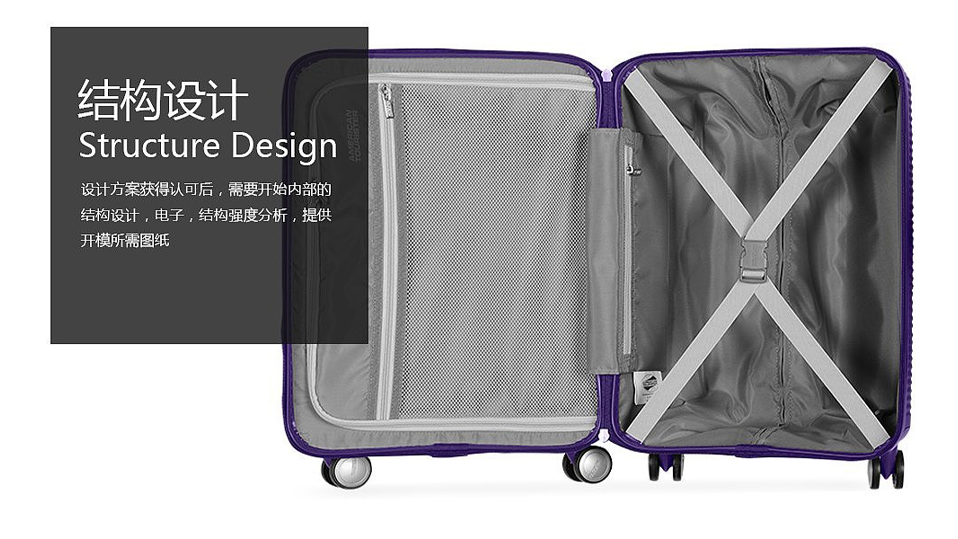 美旅AO8拉桿箱是為旅行者設計的產(chǎn)品。她造型柔和、簡潔,表面的立體漩渦設計時尚個性。產(chǎn)品采用PP材料注塑一體成型,抗壓且耐刮花。該產(chǎn)品獲得了2017年紅點設計大獎。