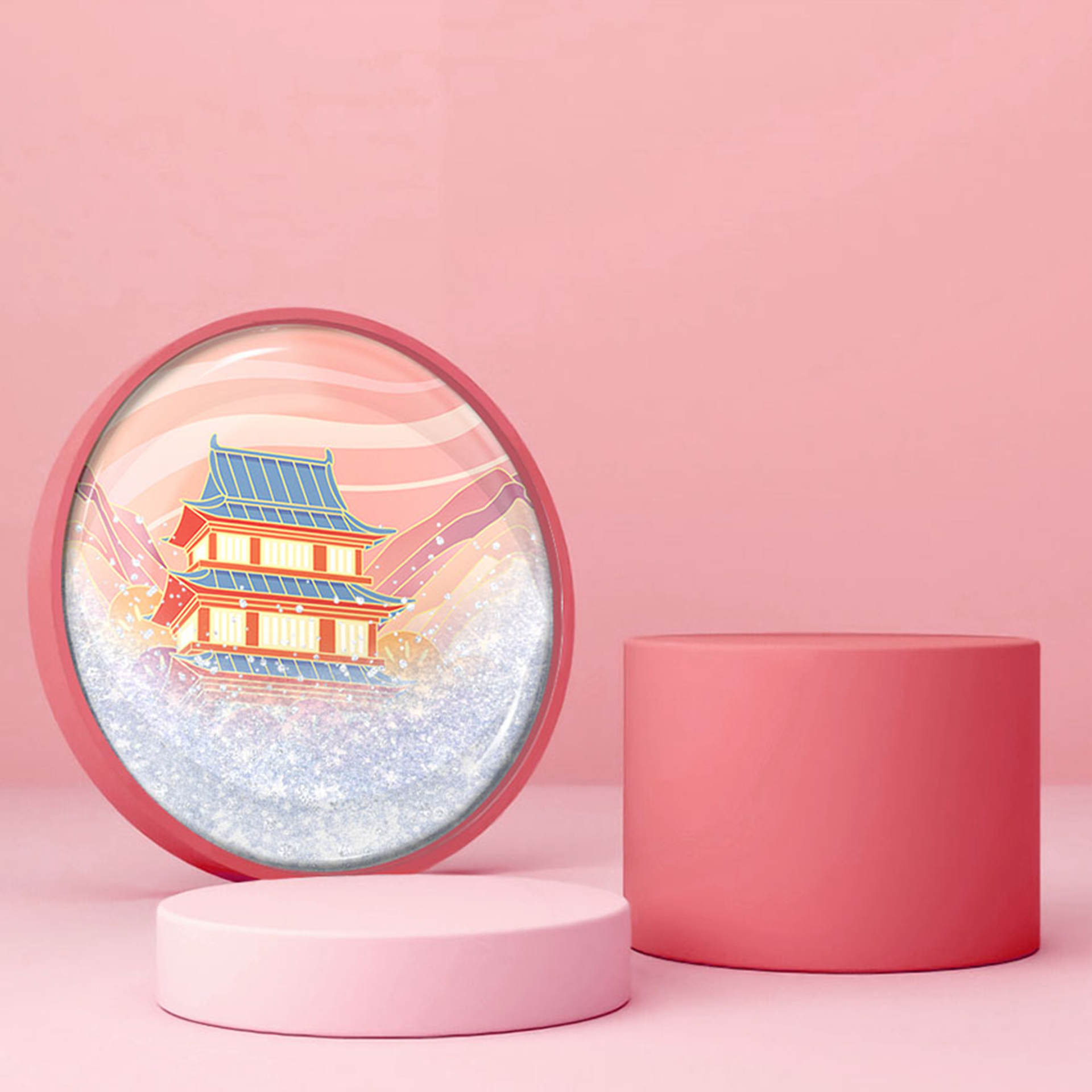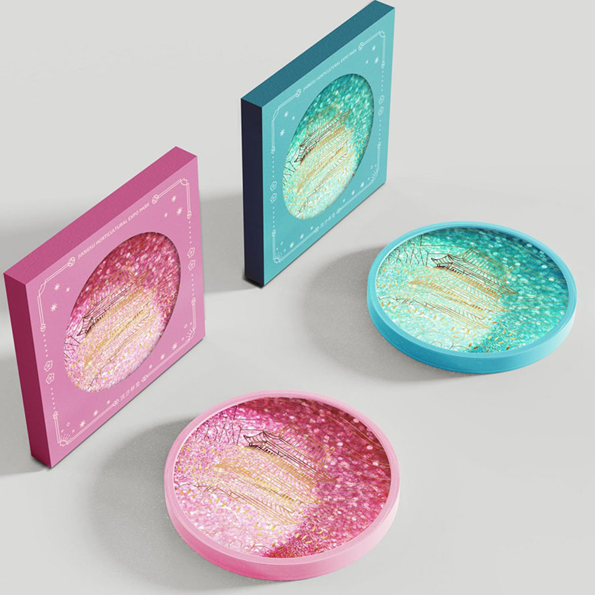 流沙杯墊系列:雨京園·流沙杯墊系列以商京園的地標(biāo)建筑景陽(yáng)樓為設(shè)計(jì)靈感,巧妙的將建筑元素做了畫(huà)中畫(huà)的處理,表達(dá)了美好祝福。