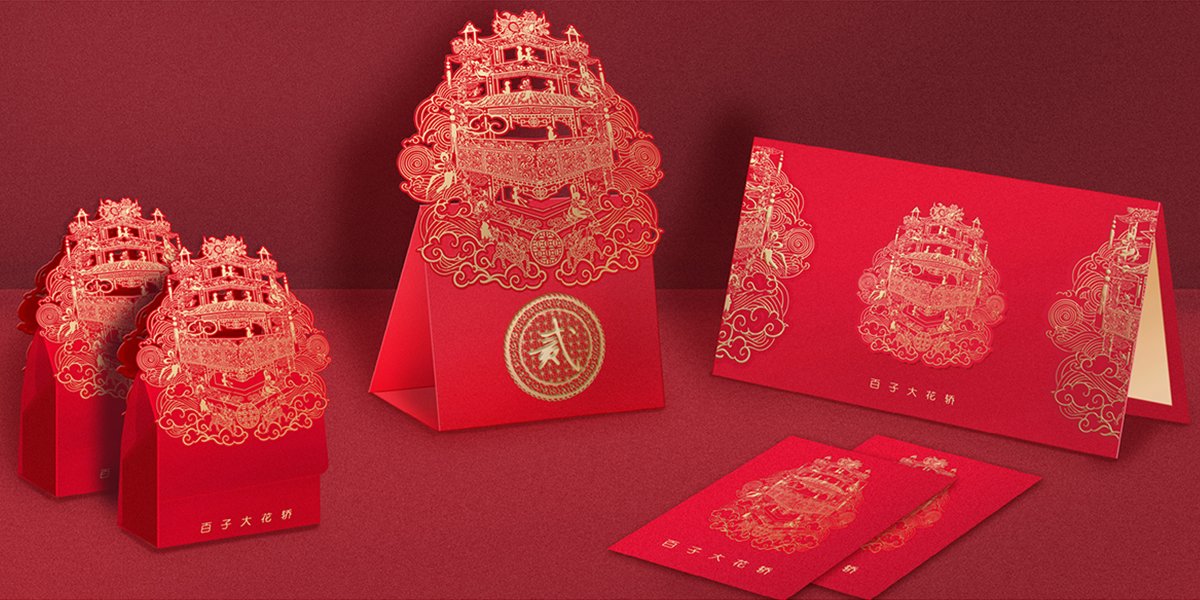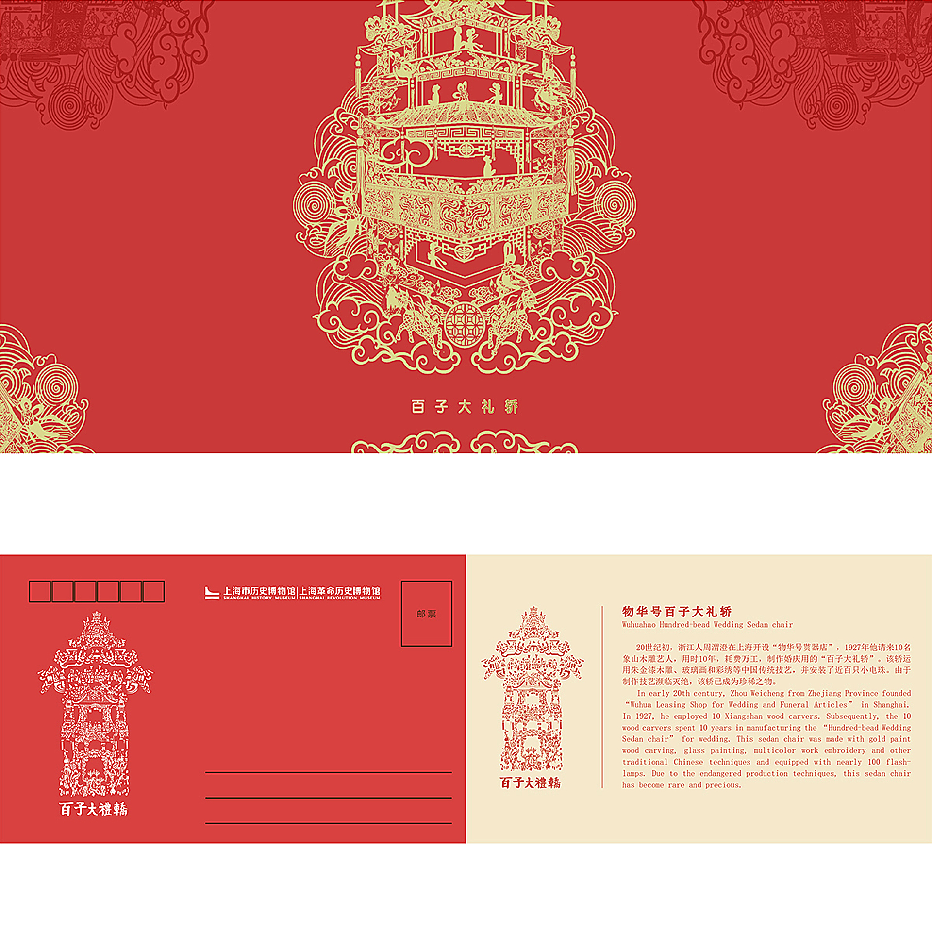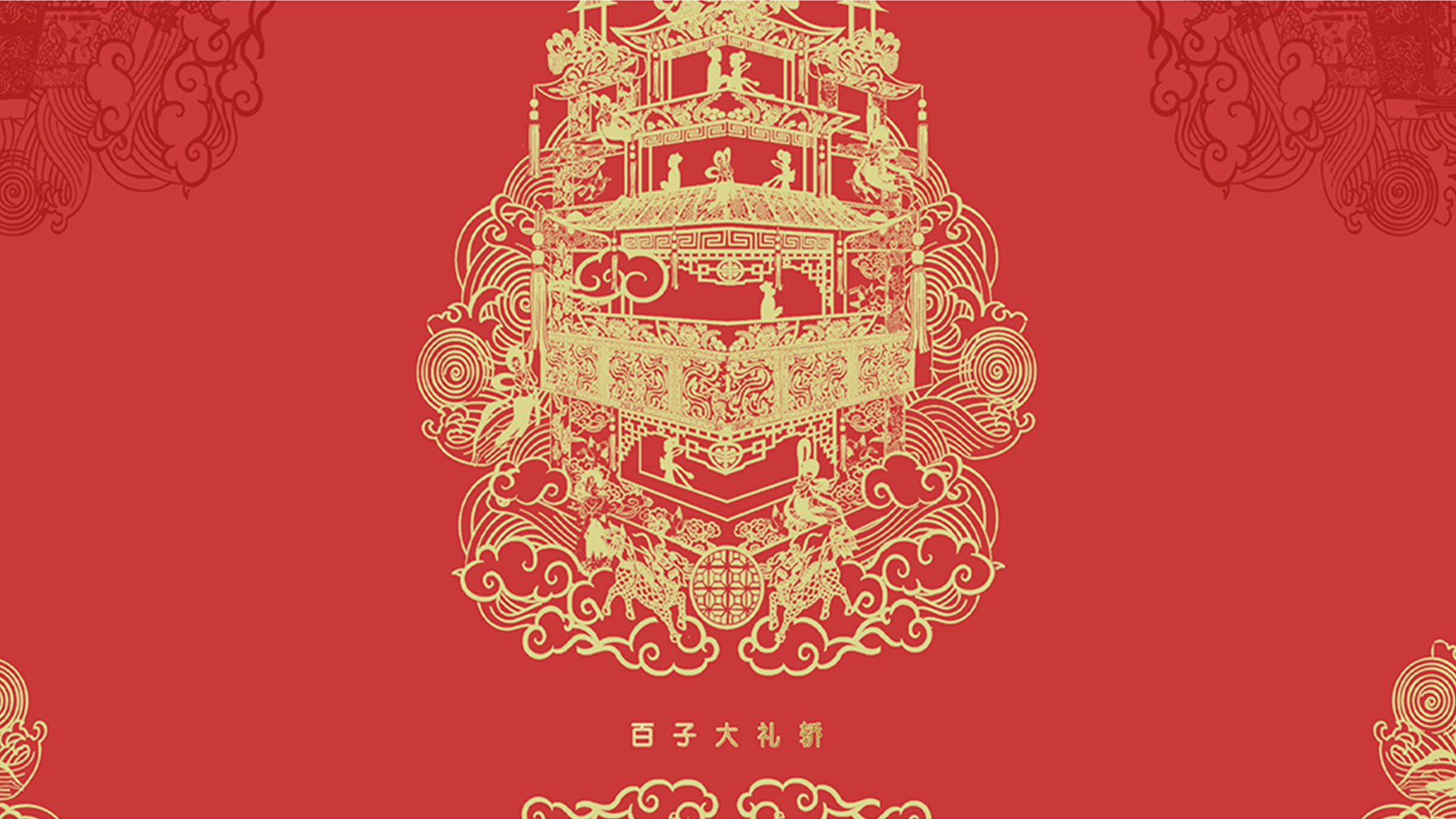 民國“百子大禮轎”是上海市歷史博物館重要藏品,是原上?!拔锶A號貰器店”主人周渭澄為兒子周宗余娶親所制,當(dāng)時從寧波請來了10位木雕藝人從1927年開始制作,歷時十年,直至1936年才完工。因制作需耗費近一萬工時,也被稱為“萬工轎”。當(dāng)木馬設(shè)計有幸看到花轎真顏的那一刻,便對它肅然起敬,更激發(fā)了為花轎做好喜事衍生品的愿望,將它的美融入人們的喜事生活。