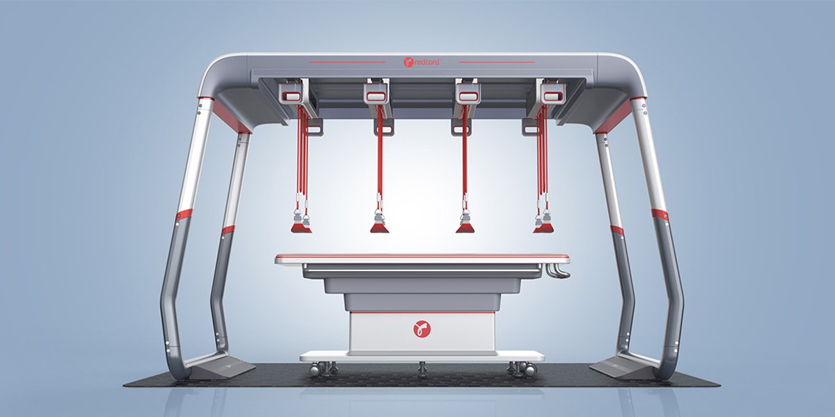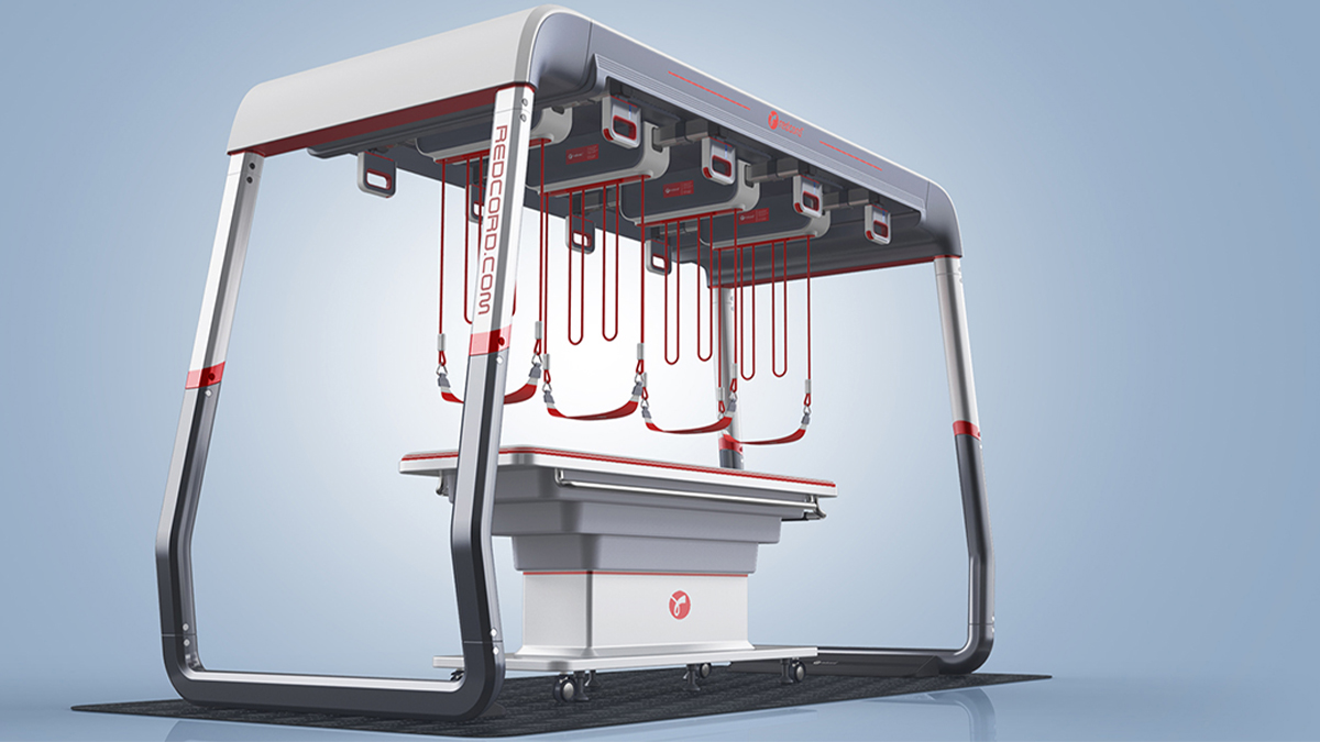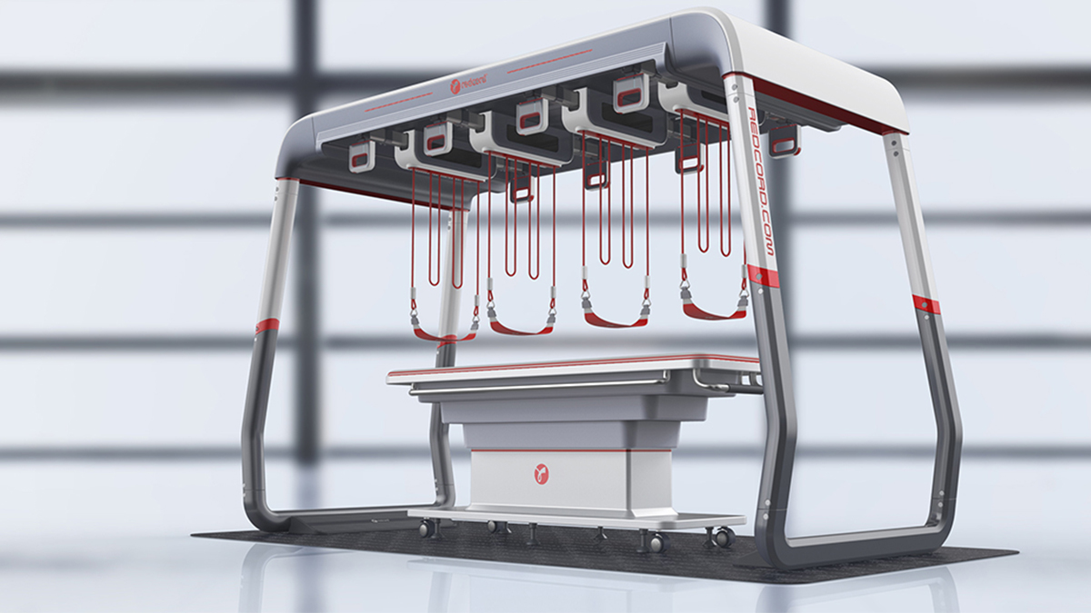 “紅繩“ 康復理療終端是一款集康復醫(yī)療和運動健身一體的設備。設計團隊將移動模組和醫(yī)療床進行有機組合,打造了一體化的外觀設計形象。