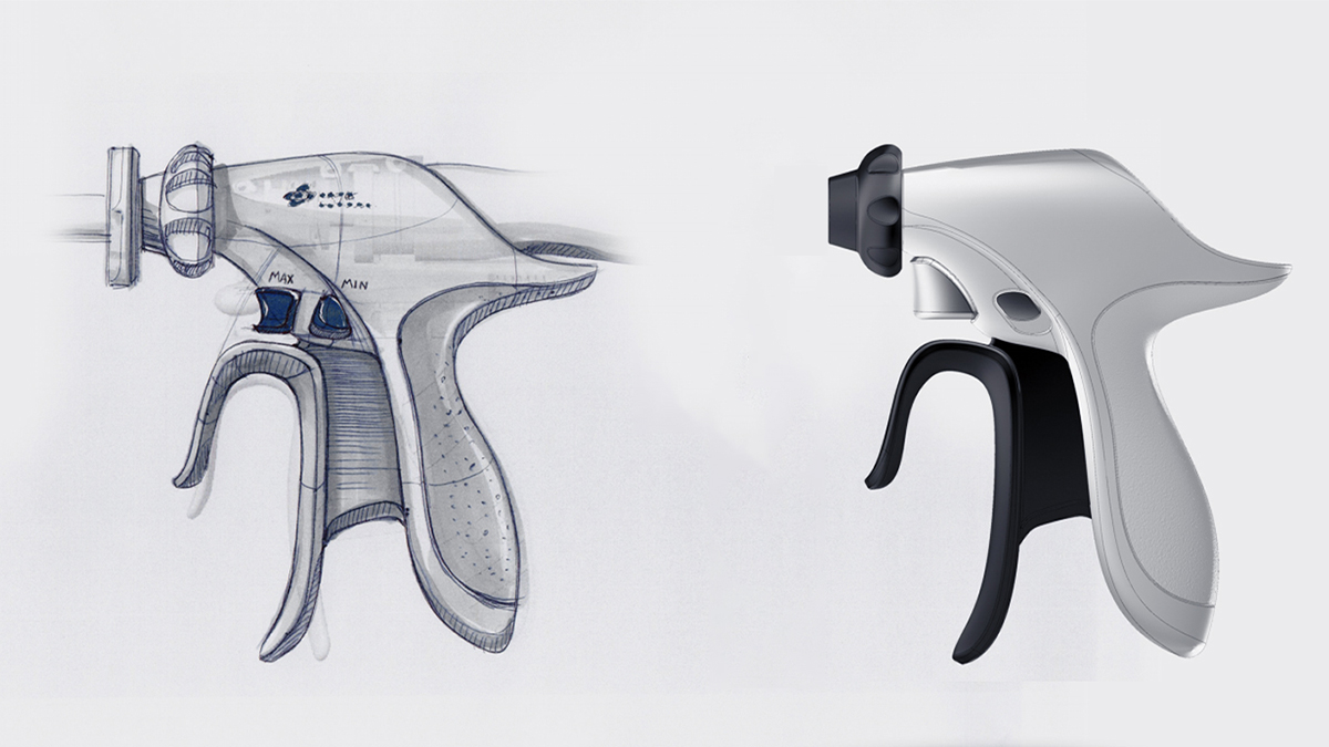 手術(shù)鉗系列運(yùn)用了蜂鳥的造型與逸思整體VI視覺規(guī)范,在主機(jī)產(chǎn)品上延續(xù)蜂鳥的造型語言,用大弧度傾斜顯示屏的做法, 巧妙地適應(yīng)了手術(shù)間特有的環(huán)境和醫(yī)生的 操作習(xí)慣。