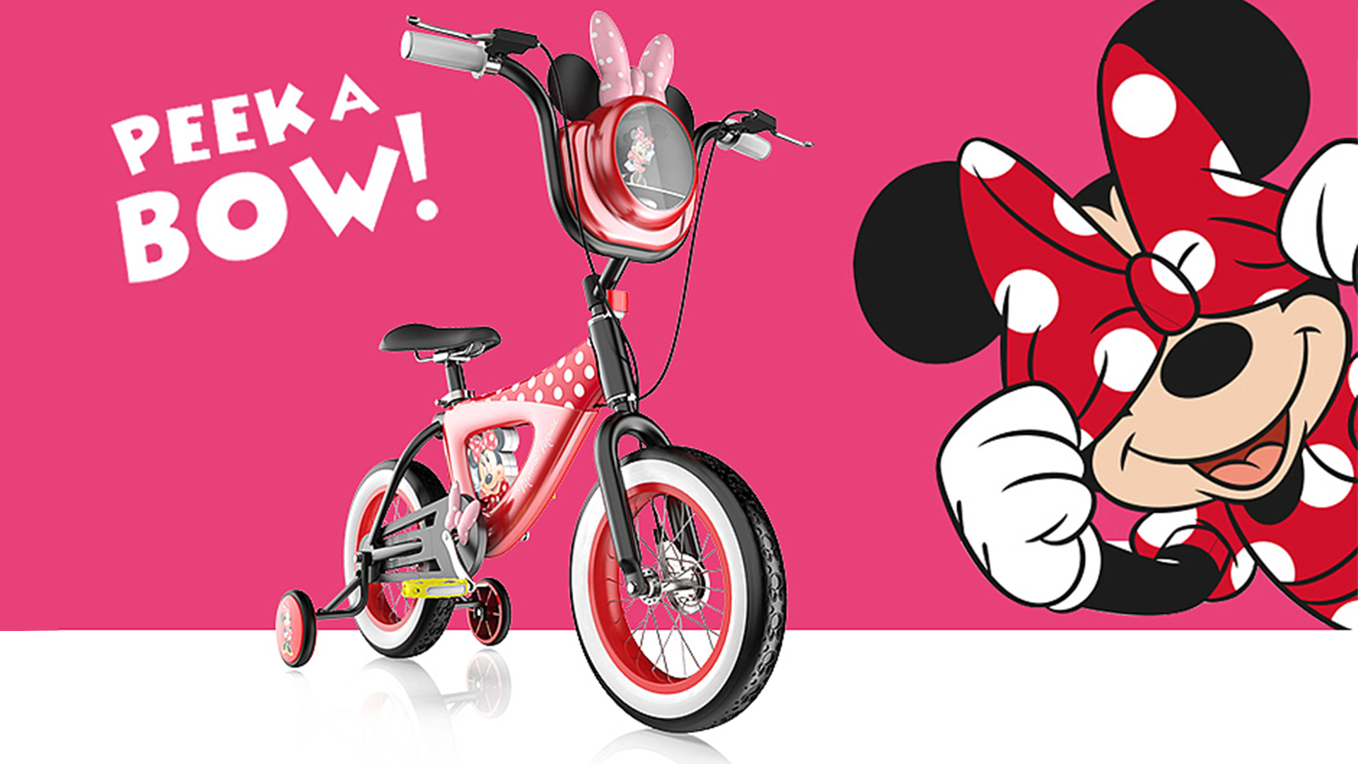 迪士尼是孩子們游玩的勝地,是孩子心目中的童話世界。這里一草一木都充滿著童趣。孩子喜歡的動漫人物也都在這里,其中米妮老鼠是一個非常受歡迎的角色,我們將通過這一廣受兒童喜愛的IP形象融入此次兒童自行車的設(shè)計中,給孩子們在成長的過程中,帶來更多的童趣與開心的回憶。